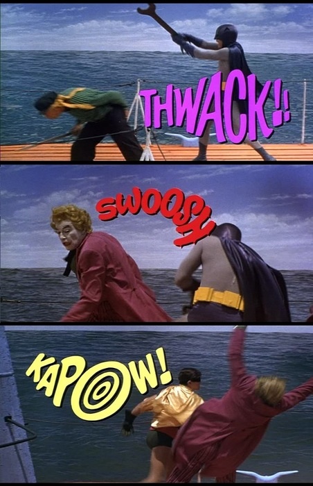 My mother reading out loud to me the THWACKs, SWOOSHs, and KAPOWs