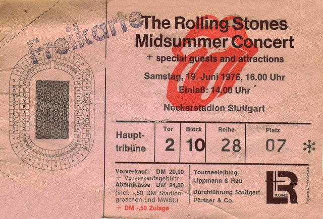 Jimi Hendrix at the Cap Centre for my friend, Lee. Jefferson Airplane in San Francisco for Tony. The Rolling Stones in Germany on their Tour of Europe ’76 for Dixie.