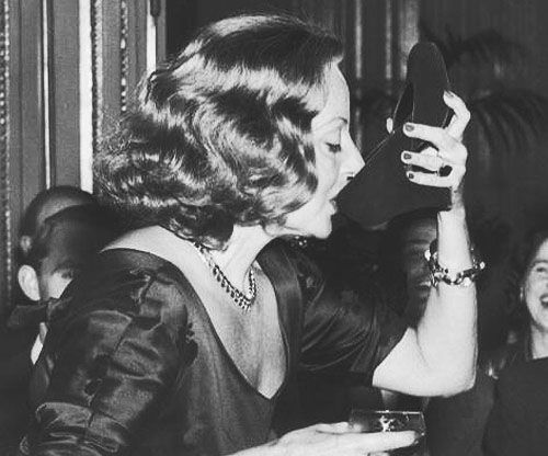 American actress Tallulah Bankhead (1902 – 1968) drinks champagne from her shoe during a press conference at the Ritz Hotel in London, 7th September 1951. (Photo by Popperfoto/Getty Images)